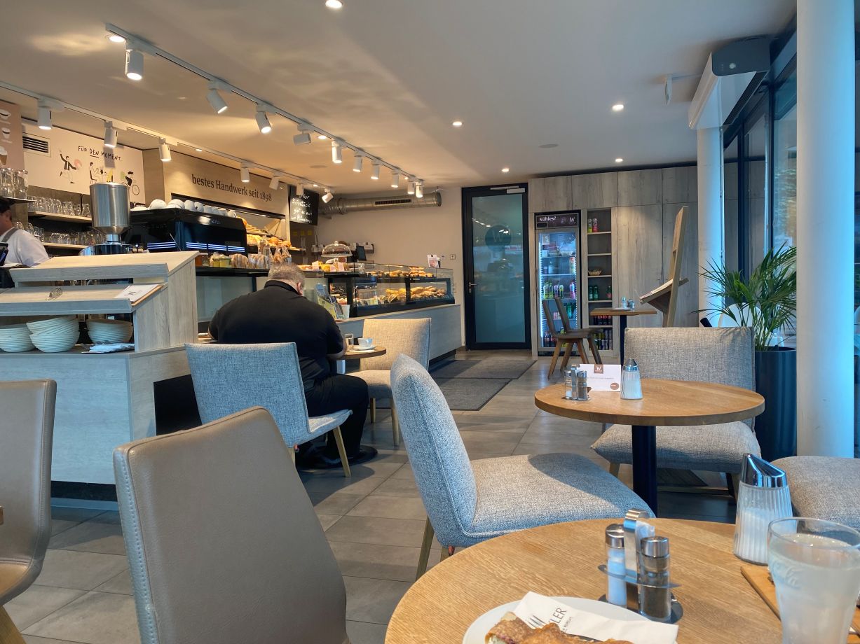 Das Lokal selbst präsentiert sich modern und hell. Viel Holz und Lederbezüge schaffen eine warme Atmosphäre, während Bilder an den Wänden Einblicke in die Geschichte und den Charakter des Familienbetriebs geben. Durch die großzügige Verglasung fällt reichlich Tageslicht in den Raum, was die freundliche Stimmung zusätzlich unterstreicht.