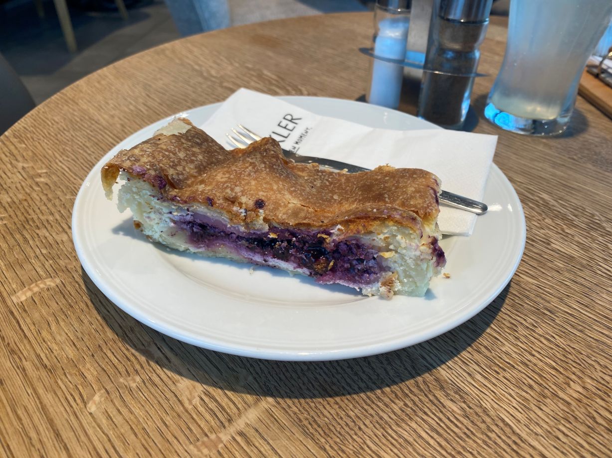 Besonders überzeugt hat mich der Heidelbeer-Topfenstrudel: goldbraun gebacken, mit einer ausgewogenen, angenehm leichten Topfenmasse und einer fruchtigen Heidelbeerfüllung, die in kräftigem Violett leuchtet. Nicht zu süß, nicht zu schwer – einfach genau richtig und ein schönes Beispiel für ehrliches, handwerkliches Gebäck.