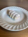 - Die aufgestrichene Masse wird wie eine Schnecke eingerollt, der länge nach durchgeschnitten und diese 2 Teile in sich verflochten.